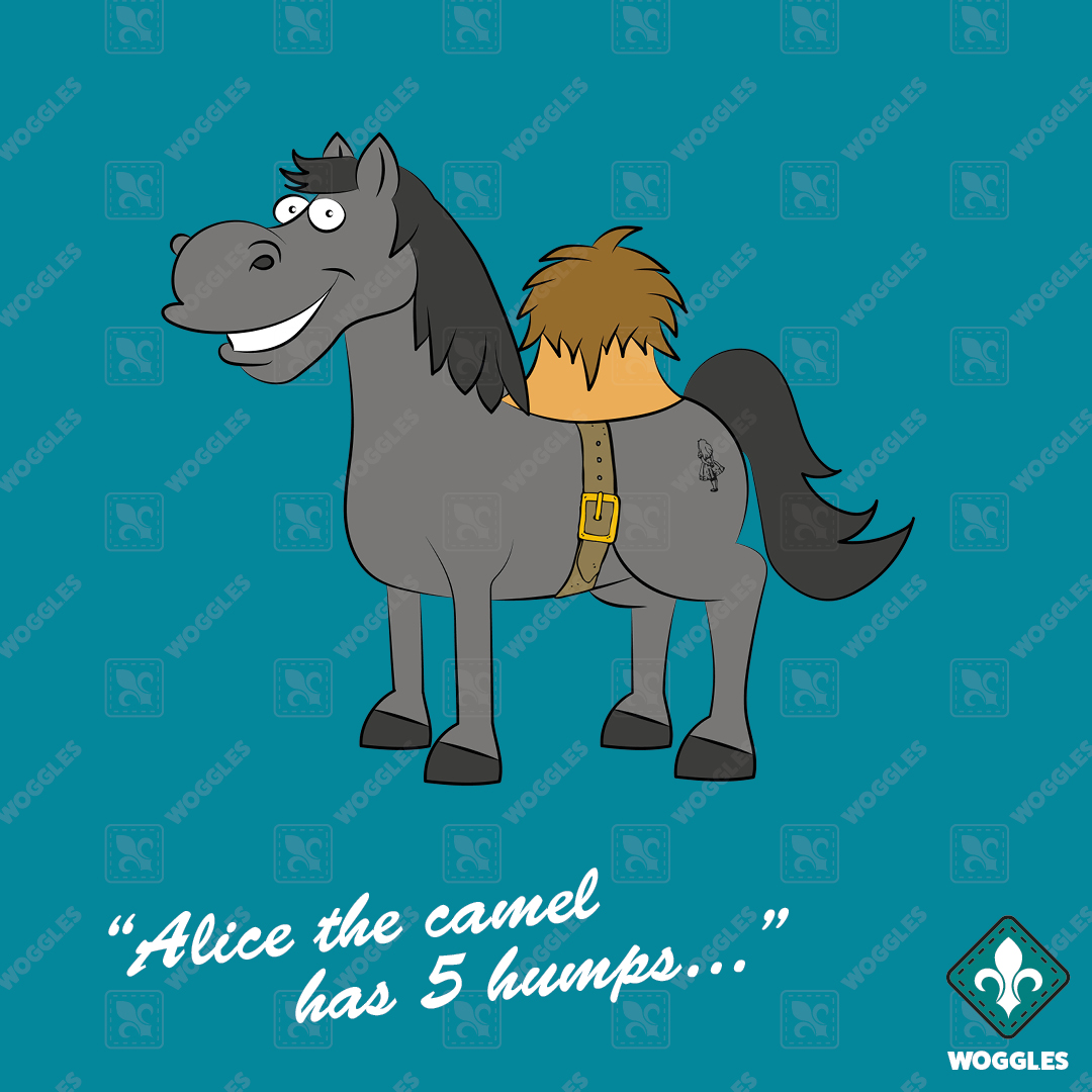 | Song Lyrics | Alice the camel had five humps, Alice the camel had four humps, . . . repeat counting down until . . . Alice the camel has no humps, |