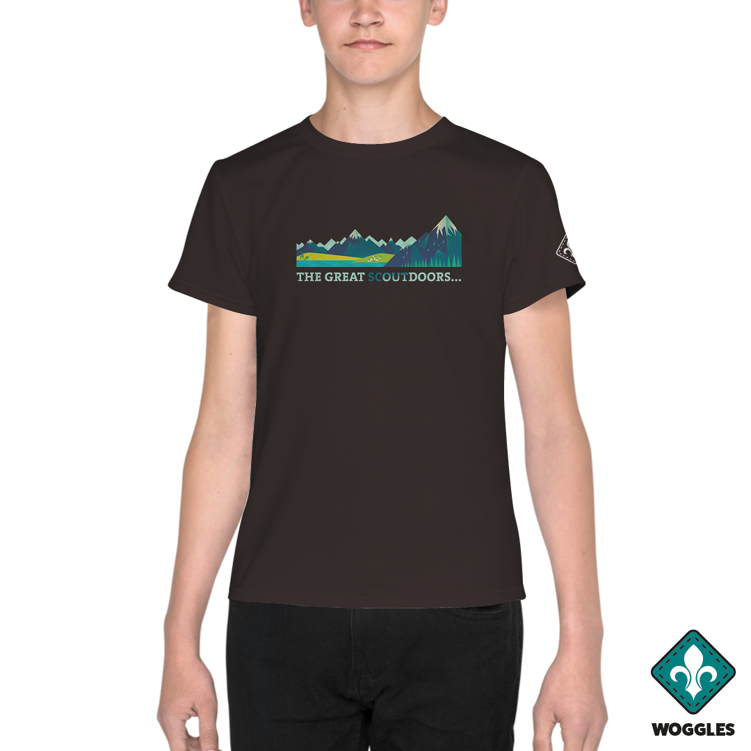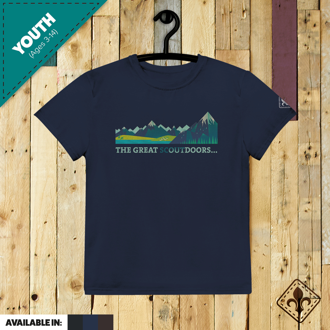 This t-shirt makes for a great staple piece in any Scouting wardrobe! Celebrating the place that Scouts love to be – The Great Outdoors.